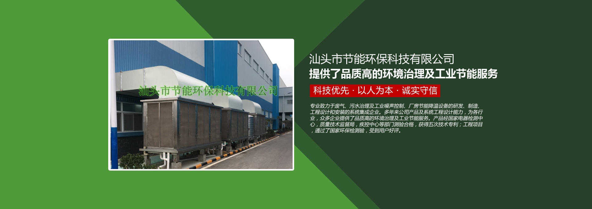 汕頭市節(jié)能環(huán)保科技有限公司創(chuàng)建于1998年,是一家專業(yè)致力于廢氣、污水、粉塵、噪聲治理,廠房節(jié)能降溫設(shè)備的研發(fā)、制造、工程設(shè)計和安裝的系統(tǒng)集成企業(yè)。多年來公司產(chǎn)品及系統(tǒng)工程設(shè)計能力,為各行業(yè),眾多企業(yè)提供了品質(zhì)高的環(huán)境治理及工業(yè)節(jié)能服務(wù)。產(chǎn)品經(jīng)國家電器檢測中心,質(zhì)量技術(shù)監(jiān)督局,疾控中心等部門測驗合格,獲得五次技術(shù)專利;工程項目通過了國家環(huán)保檢驗檢測,受到用戶好評。